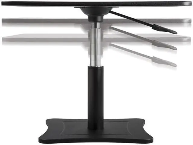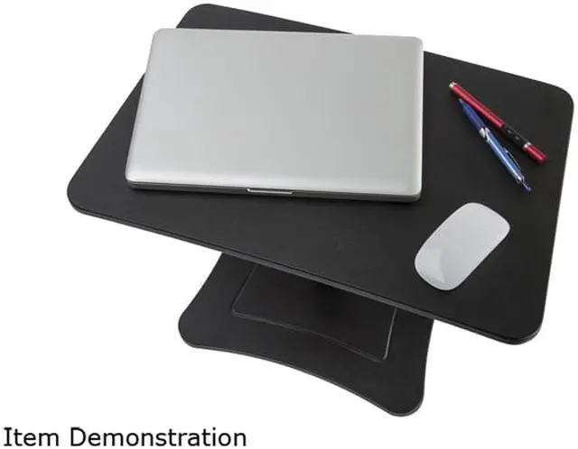Standing while working on your laptop or tablet becomes a breeze. Simple design and sturdy wood and steel construction, this ergonomic option allows for maximum workspace with a small footprint. The scratch-resistant PVC coated worksurface allows for the space to work comfortably and accommodate a mouse, a cup of coffee or a 4 x 6 notepad. With a lever directly under the work surface, adjusting the height is simple and smooth. The heavy-duty steel piston allows for height adjustments from 12" to 15 3/4" above the desk or tabletop. Note: Does not lower to a sitting position. Create a standing work station virtually anywhere that meets the demand of your busy day. Portable and easy to move. OEM/Compatible: Compatible; Workstation Type: Mobile Workstation; Traditional Desk/Table; Width: 21"; Depth: 13".