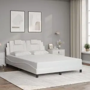 vidaXL Bed Frame with LED without Mattress "Hvar" Bedroom White 53.9"x74.8"