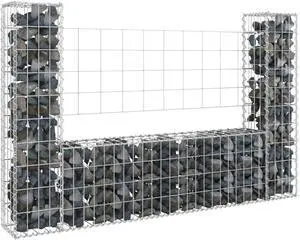 vidaXL Gabion Basket U-Shape with 2 Posts Iron Garden Patio Wall Wire Fence Cage