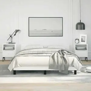 vidaXL Faux Leather Bed Frame Platform Bed , Scandinavian Style/Slats Support/No Box Spring Needed/Without Mattress/Easy Assembly, White Queen Bed