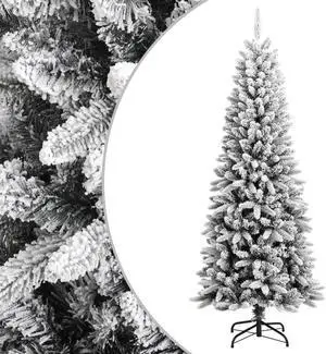 vidaXL Christmas Tree Slim Artificial Xmas Tree with Flocked Snow PVC and PE
