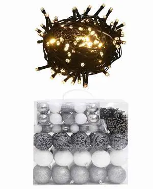 vidaXL Christmas Ball Set with Peak 120 Piece LED Decoration White and Gray