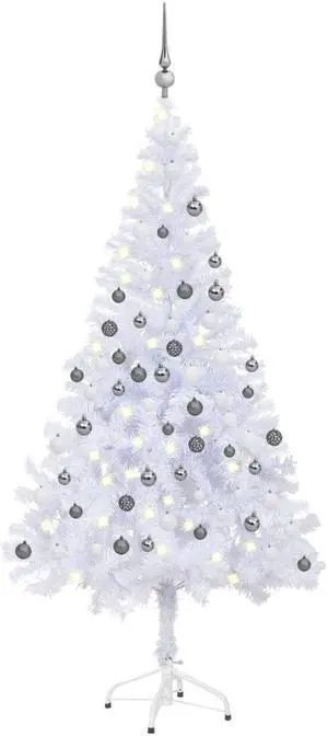 vidaXL Christmas Tree Artificial Xmas Tree with LEDs and Ball Set White PVC