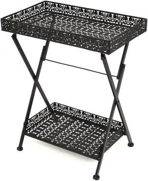 vidaXL Side Table End Table Folding Tea Table with Bottom Basket Metal Black