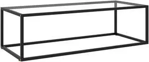 vidaXL Coffee Table with Black Frame and Tempered Glass Top, Center Table for Living Room, 37.4''x21.7''x15.7'', Gray and Transparent