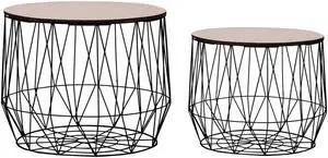 vidaXL Coffee Table 2 Pcs Round End Sofa Table Living Room Furniture Black