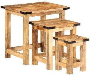 vidaXL Nesting Side Table Set of 3 Natural wood color with black accents