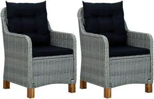 vidaXL Patio Chairs 2 Pcs Dining Chair with Cushions Poly Rattan Light Gray