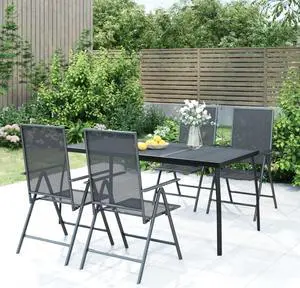 vidaXL Patio Dining Set 9 Piece Table and Chair Black Steel and Textilene