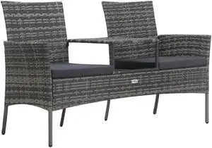 vidaXL Patio Lounge Set Table and Sofas Outdoor Garden Gray Poly Rattan 2 Piece