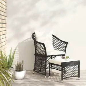 vidaXL Patio Chair Single Patio Chair with Cushions Black and Gray Poly Rattan