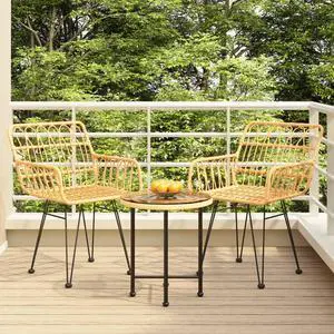 vidaXL Patio Furniture Set 3 Piece Patio Set with Beige Cushions Poly Rattan