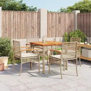 vidaXL Patio Dining Set with Cushions Furniture 5 Piece Beige Poly Rattan