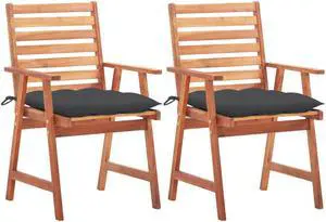 vidaXL Patio Dining Chairs 2 Pcs Outdoor Chair with Cushions Solid Wood Acacia