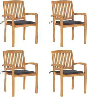 vidaXL 4x Solid Teak Wood Stacking Patio Chairs with Cushions Garden Chairs