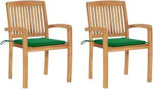 vidaXL 2x Solid Teak Wood Patio Chairs with Green Cushions Garden Seating