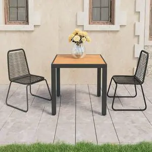 vidaXL Patio Dining Set 3 Piece PVC Rattan Black and Brown Seat Dinner Garden
