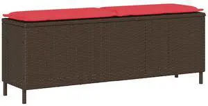 vidaXL Patio Bench with Cushion Brown 43.3"x11.8"x15.9" Poly Rattan
