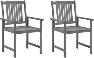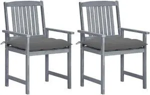 vidaXL Patio Chairs 2 Pcs Outdoor Chair with Cushions Gray Solid Wood Acacia