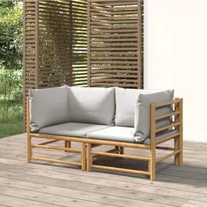vidaXL Patio Loveseats 2 Pcs Sectional Sofa with Light Gray Cushions Bamboo