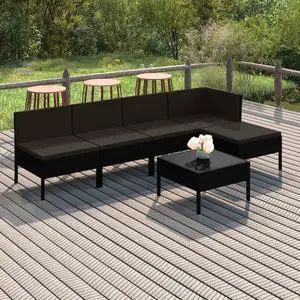 vidaXL Patio Furniture Set 6 Piece Sofa Couch with Cushions Poly Rattan Black