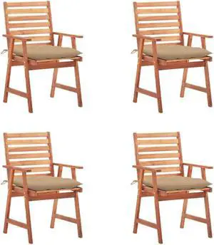 vidaXL 4x Solid Acacia Wood Patio Dining Chairs with Cushions Dinner Chair