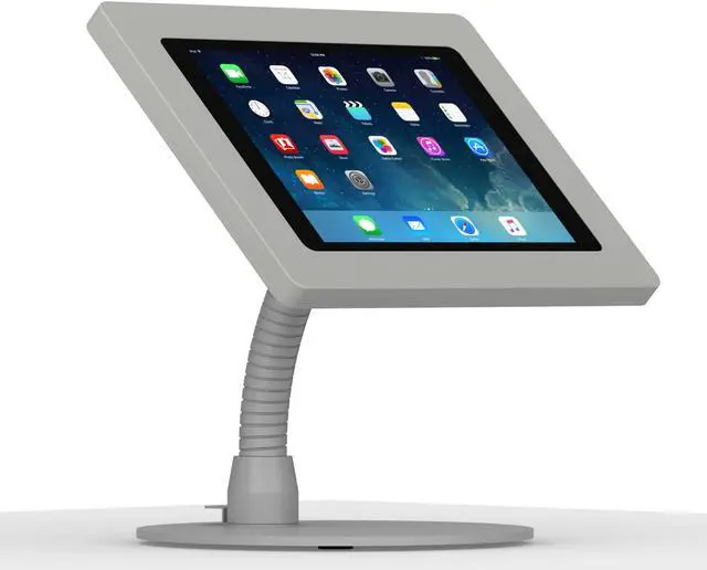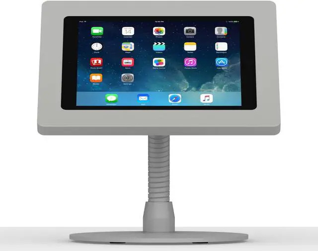 Our portable flexible stand allows any tablet to be shown securely easy viewing, with kensington lock slot for the ultimate in security. Perfect for high traffic locations or retail setups!