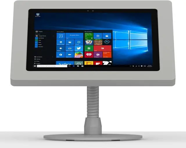 Our portable flexible stand allows any tablet to be shown securely easy viewing, with kensington lock slot for the ultimate in security. Perfect for high traffic locations or retail setups!