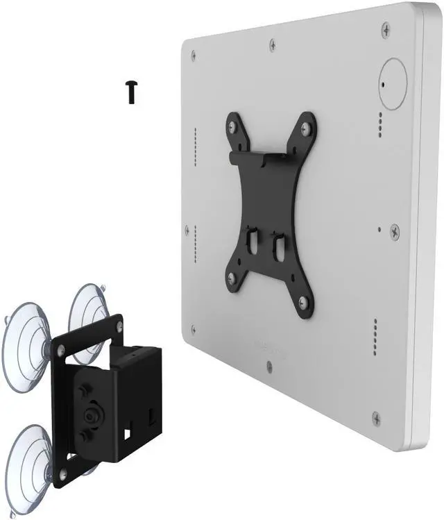 The VESA mounting kit includes everything you need to directly attach it to glass surface. Simply insert the included suction cups into the wall mounting plate, clean the glass surface with the included alcohol wipes. Finish your installation in mere minutes!