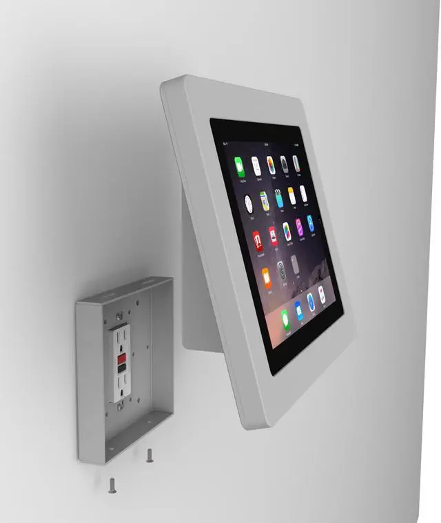 The kiosks mounting options allow it to be installed to an already existing single or double gang box, or directly onto drywall. Furthermore we can install this kiosk on top of a decora style electrical outlet - no need to run new power connections to the tablet. The power components that natively come with the tablet, can be plugged in and comfortably tucked inside the mounts chamber. All of this making for a clean looking and efficient kiosk. This Tablet Kiosk has many options - truly one of the most versatile wall mounting kiosks we've ever had.