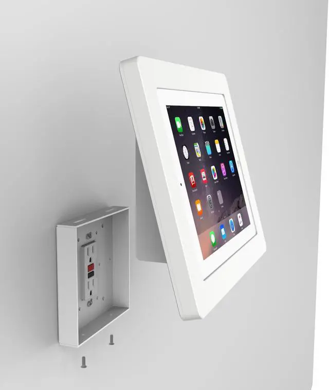 The kiosks mounting options allow it to be installed to an already existing single or double gang box, or directly onto drywall. Furthermore we can install this kiosk on top of a decora style electrical outlet - no need to run new power connections to the tablet. The power components that natively come with the tablet, can be plugged in and comfortably tucked inside the mounts chamber. All of this making for a clean looking and efficient kiosk. This Tablet Kiosk has many options - truly one of the most versatile wall mounting kiosks we've ever had.