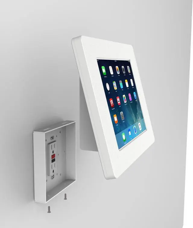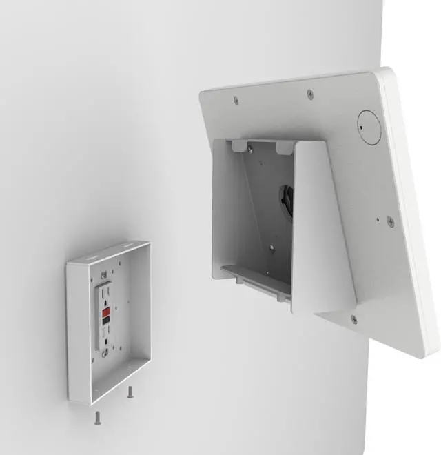 The kiosks mounting options allow it to be installed to an already existing single or double gang box, or directly onto drywall. Furthermore we can install this kiosk on top of a decora style electrical outlet - no need to run new power connections to the tablet. The power components that natively come with the tablet, can be plugged in and comfortably tucked inside the mounts chamber. All of this making for a clean looking and efficient kiosk. This Tablet Kiosk has many options - truly one of the most versatile wall mounting kiosks we've ever had.