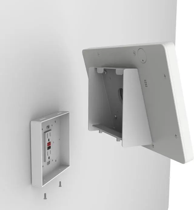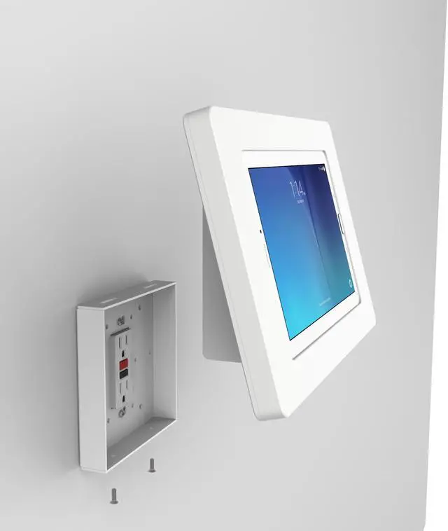 The kiosks mounting options allow it to be installed to an already existing single or double gang box, or directly onto drywall. Furthermore we can install this kiosk on top of a decora style electrical outlet - no need to run new power connections to the tablet. The power components that natively come with the tablet, can be plugged in and comfortably tucked inside the mounts chamber. All of this making for a clean looking and efficient kiosk. This Tablet Kiosk has many options - truly one of the most versatile wall mounting kiosks we've ever had.