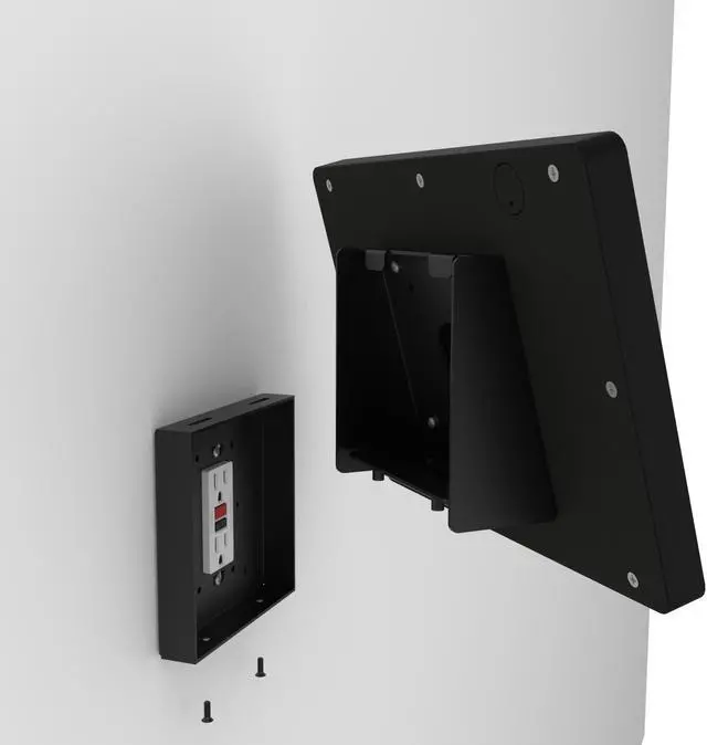 The kiosks mounting options allow it to be installed to an already existing single or double gang box, or directly onto drywall. Furthermore we can install this kiosk on top of a decora style electrical outlet - no need to run new power connections to the tablet. The power components that natively come with the tablet, can be plugged in and comfortably tucked inside the mounts chamber. All of this making for a clean looking and efficient kiosk. This Tablet Kiosk has many options - truly one of the most versatile wall mounting kiosks we've ever had.
