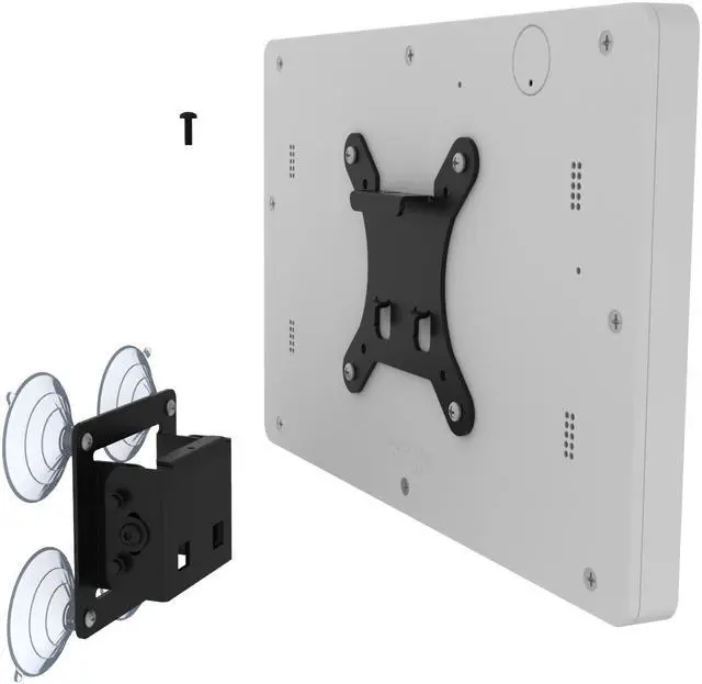 A suction-cup based mounting design allows easy installation for temporary setups and combined with its two part wall mount design. Removing your tablet after mounting can be done in seconds! Bracket can be adjusted to tilt the display angle for optimal viewing.