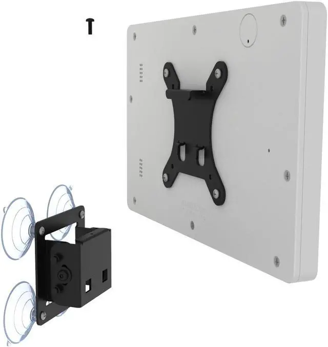 A suction-cup based mounting design allows easy installation for temporary setups and combined with its two part wall mount design. Removing your tablet after mounting can be done in seconds! Bracket can be adjusted to tilt the display angle for optimal viewing.