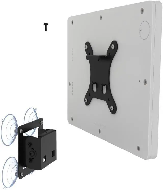 The VESA mounting kit includes everything you need to directly attach it to glass surface. Simply insert the included suction cups into the wall mounting plate, clean the glass surface with the included alcohol wipes. Finish your installation in mere minutes!