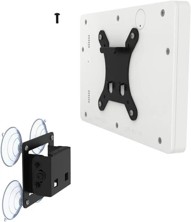 A suction-cup based mounting design allows easy installation for temporary setups and combined with its two part wall mount design. Removing your tablet after mounting can be done in seconds! Bracket can be adjusted to tilt the display angle for optimal viewing.