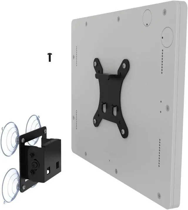 The VESA mounting kit includes everything you need to directly attach it to glass surface. Simply insert the included suction cups into the wall mounting plate, clean the glass surface with the included alcohol wipes. Finish your installation in mere minutes!