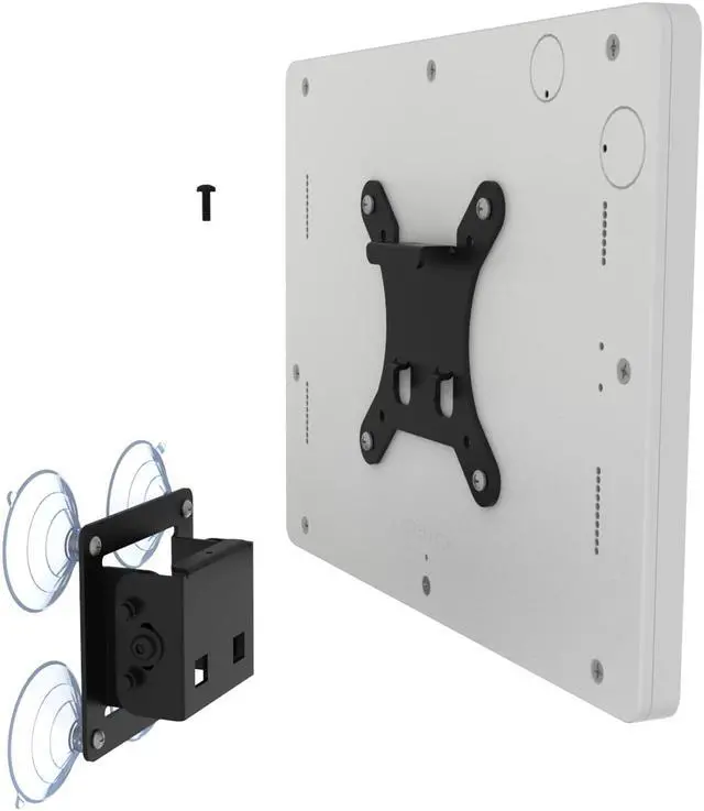 A suction-cup based mounting design allows easy installation for temporary setups and combined with its two part wall mount design. Removing your tablet after mounting can be done in seconds! Bracket can be adjusted to tilt the display angle for optimal viewing.