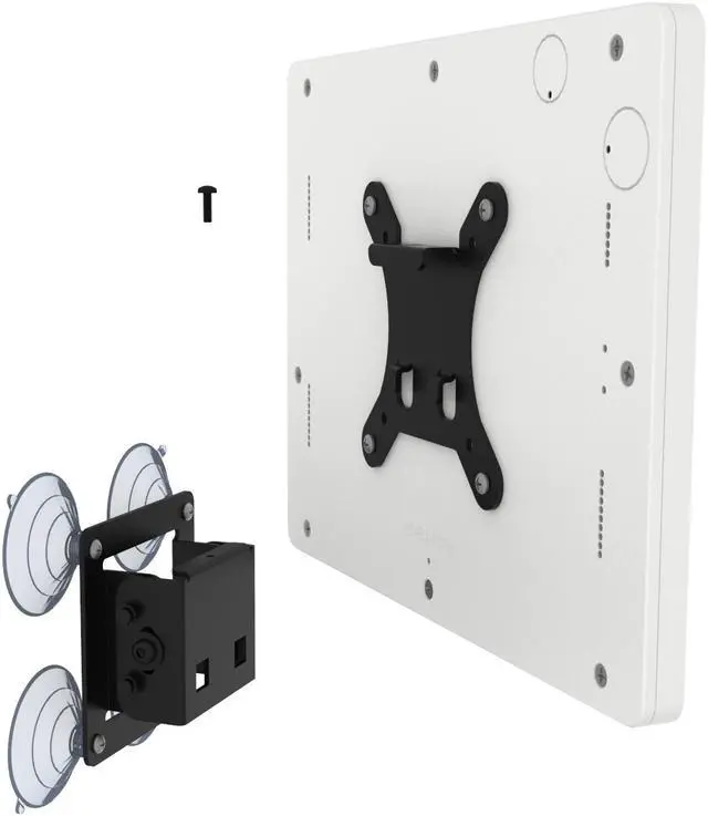 The VESA mounting kit includes everything you need to directly attach it to glass surface. Simply insert the included suction cups into the wall mounting plate, clean the glass surface with the included alcohol wipes. Finish your installation in mere minutes!