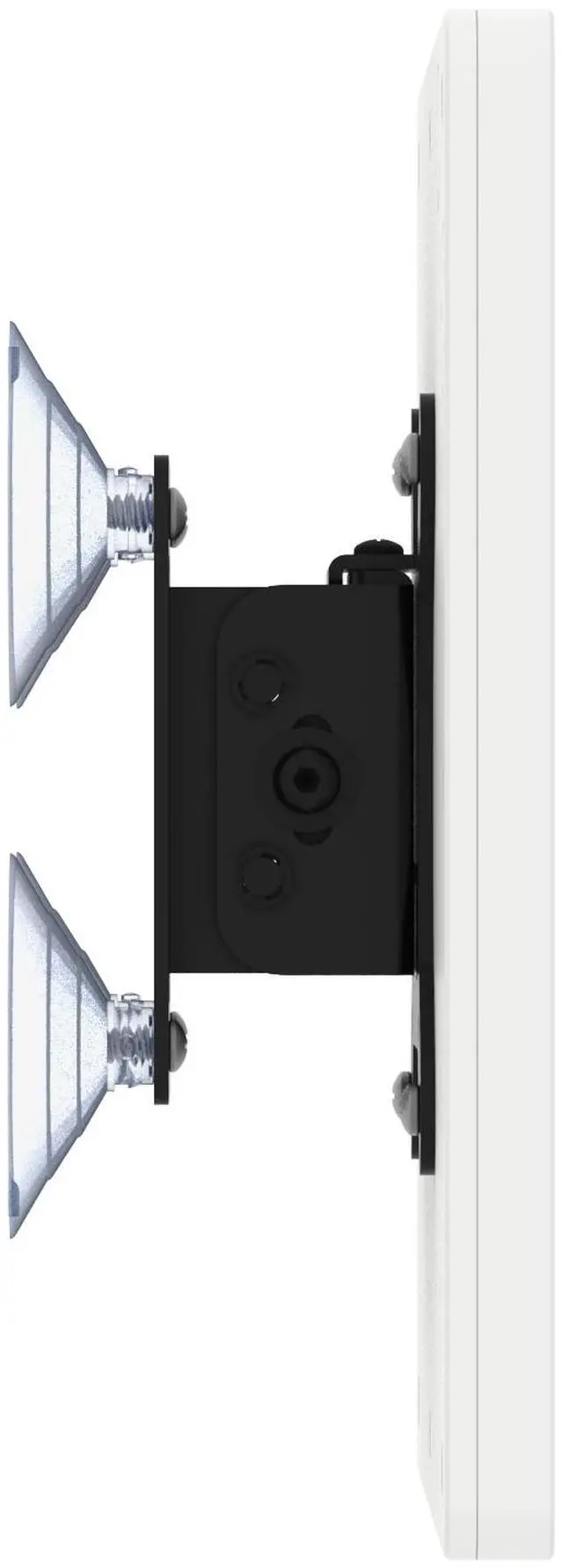 A suction-cup based mounting design allows easy installation for temporary setups and combined with its two part wall mount design. Removing your tablet after mounting can be done in seconds! Bracket can be adjusted to tilt the display angle for optimal viewing.