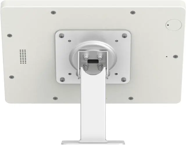 The tablet can be rotated a full 360 degree rotation, while the mounting surface can be pivoted for optimal positioning. Secure friction joints lock the tablet in place if a fixed angle is needed. Can be mounted vertically, on a desk or table, or horizontally, on a wall making it truly versatile.