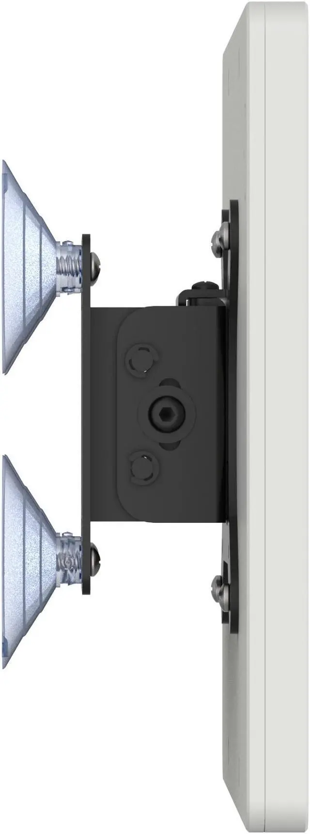 A suction-cup based mounting design allows easy installation for temporary setups and combined with its two part wall mount design. Removing your tablet after mounting can be done in seconds! Bracket can be adjusted to tilt the display angle for optimal viewing.