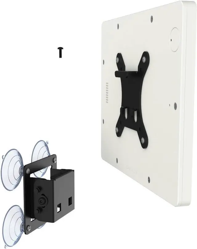 A suction-cup based mounting design allows easy installation for temporary setups and combined with its two part wall mount design. Removing your tablet after mounting can be done in seconds! Bracket can be adjusted to tilt the display angle for optimal viewing.