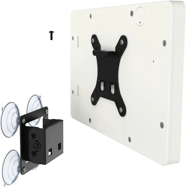 A suction-cup based mounting design allows easy installation for temporary setups and combined with its two part wall mount design. Removing your tablet after mounting can be done in seconds! Bracket can be adjusted to tilt the display angle for optimal viewing.