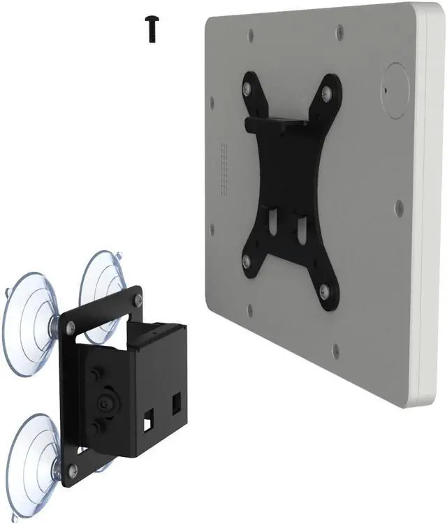 The VESA mounting kit includes everything you need to directly attach it to glass surface. Simply insert the included suction cups into the wall mounting plate, clean the glass surface with the included alcohol wipes. Finish your installation in mere minutes!