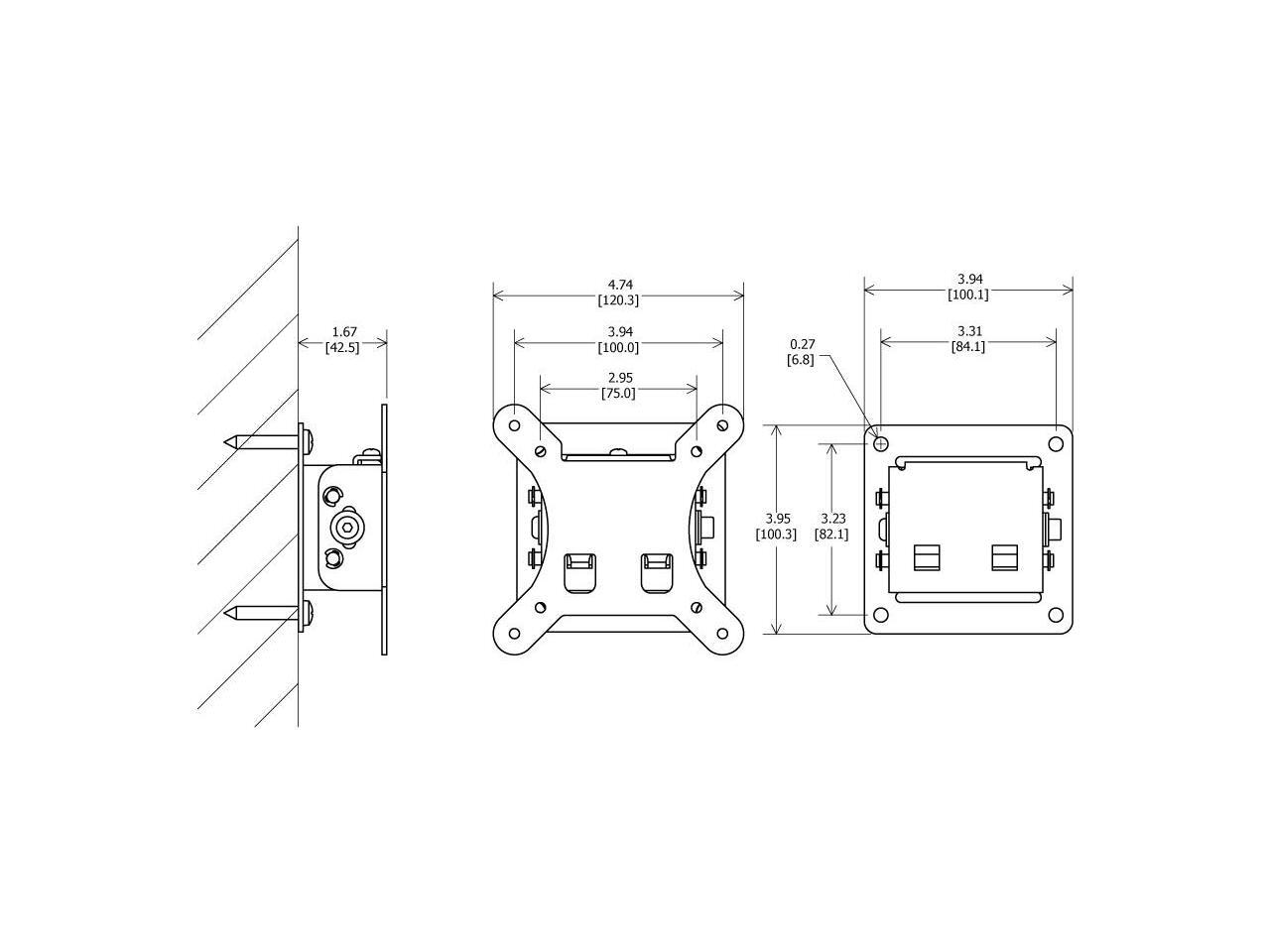 VESA 100/75 compatible wall mount with Adjustable Tilt of ±10º.