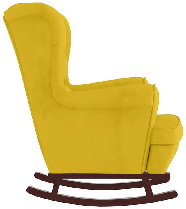 This rocking chair perfectly blends style and comfort, making it a lovely addition to any space. With its bright yellow velvet upholstery and solid rubber wood frame, this chair not only catches the eye but also provides a soothing rocking motion, great for chilling out or enjoying a good read.