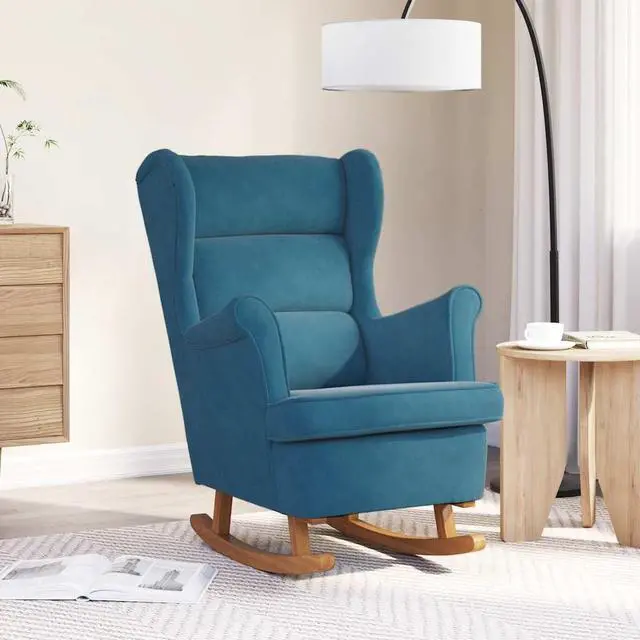 Thanks to its padded foam upholstered in soft-to-touch velvet, you can enjoy optimal comfort in your sitting time. Additionally, this living room chair is supported by solid rubber wood rocking legs which ensure extra stability.
